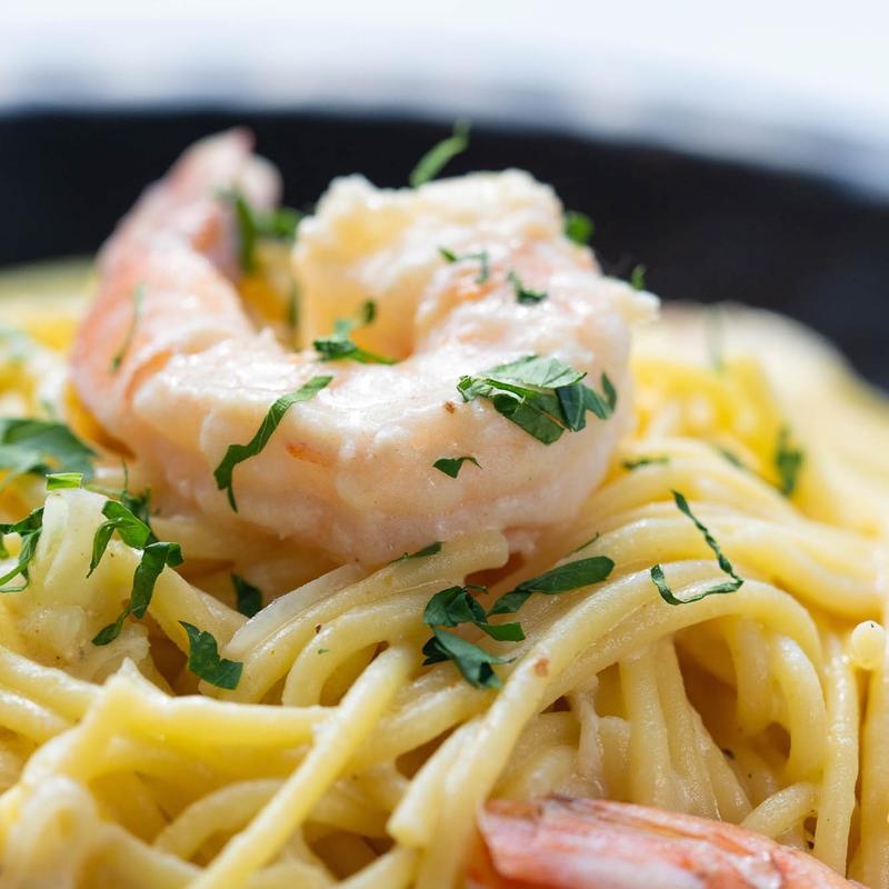 Pasta with Shrimp in Creamy Cheese Sauce